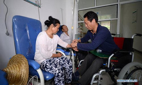 Doctor Sun Qingyong became a paraplegic from a traffic accident 22 years ago. He soon started offering medical treatment to his fellow villagers on a wheelchair at a clinic in Shaluo Village of Guanghuojie Township in Ningshan County, Ankang, northwest China's Shaanxi Province.
