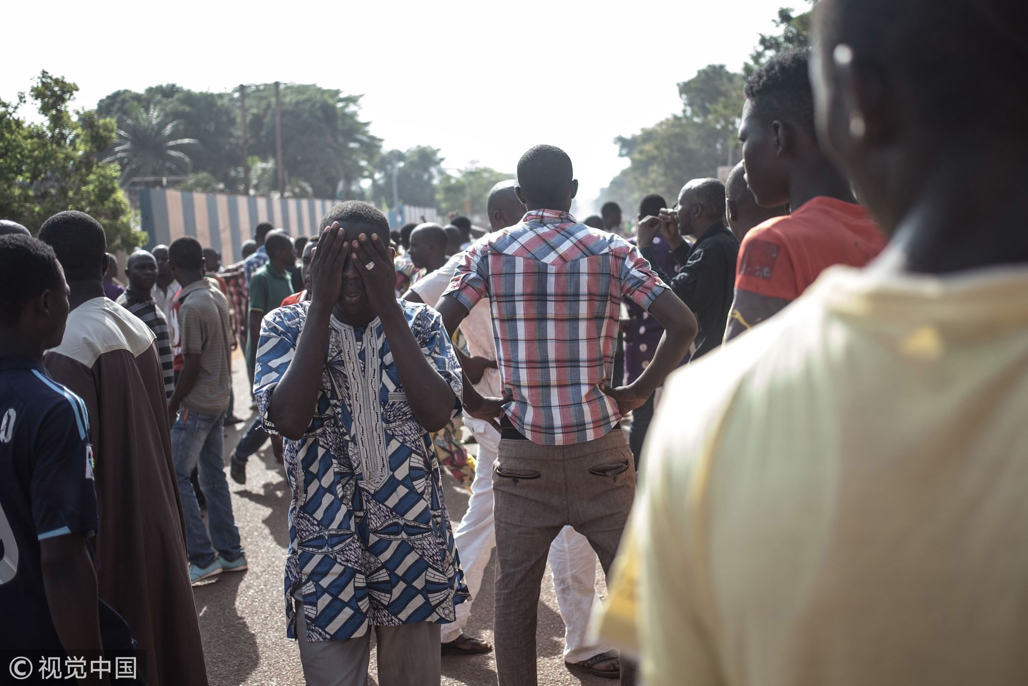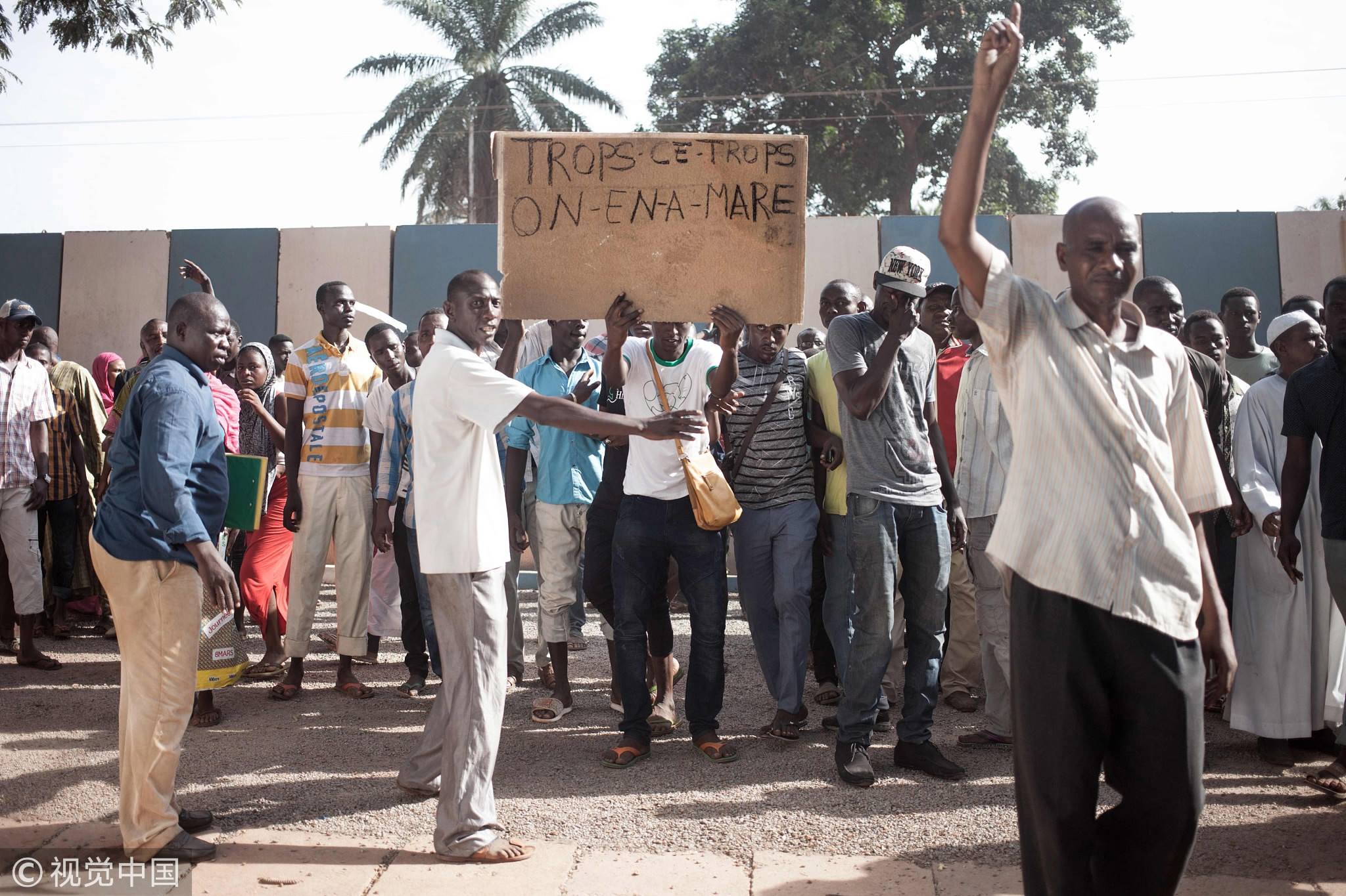 Residents of the PK5 demonstrate in front of the headquarters of MINUSCA, the UN peacekeeping mission in the Central Africa Republic, following clashes in Bangui, April 11, 2018. /VCG Photo