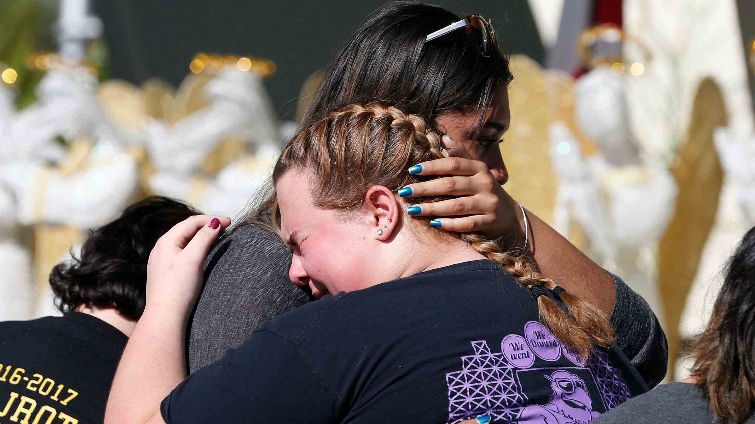 (Cover picture: Two young women embrace after placing flowers on a makeshift memorial for the victims of the Marjory Stoneman Douglas High School shooting in Parkland, Florida, February 15, 2018. /VCG Photo)
