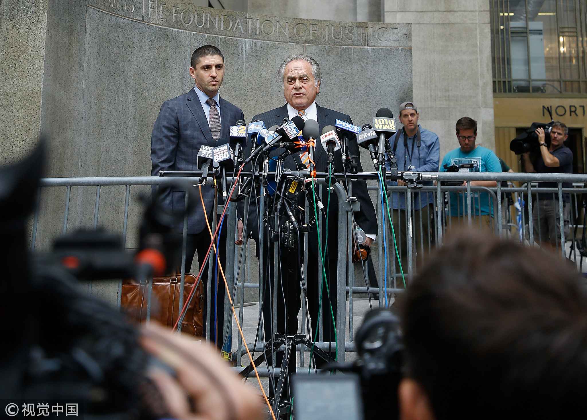Weinstein's lawyer Benjamin Brafman (R) speaks to the media outside criminal court in New York City, October 11, 2018. /VCG Photo