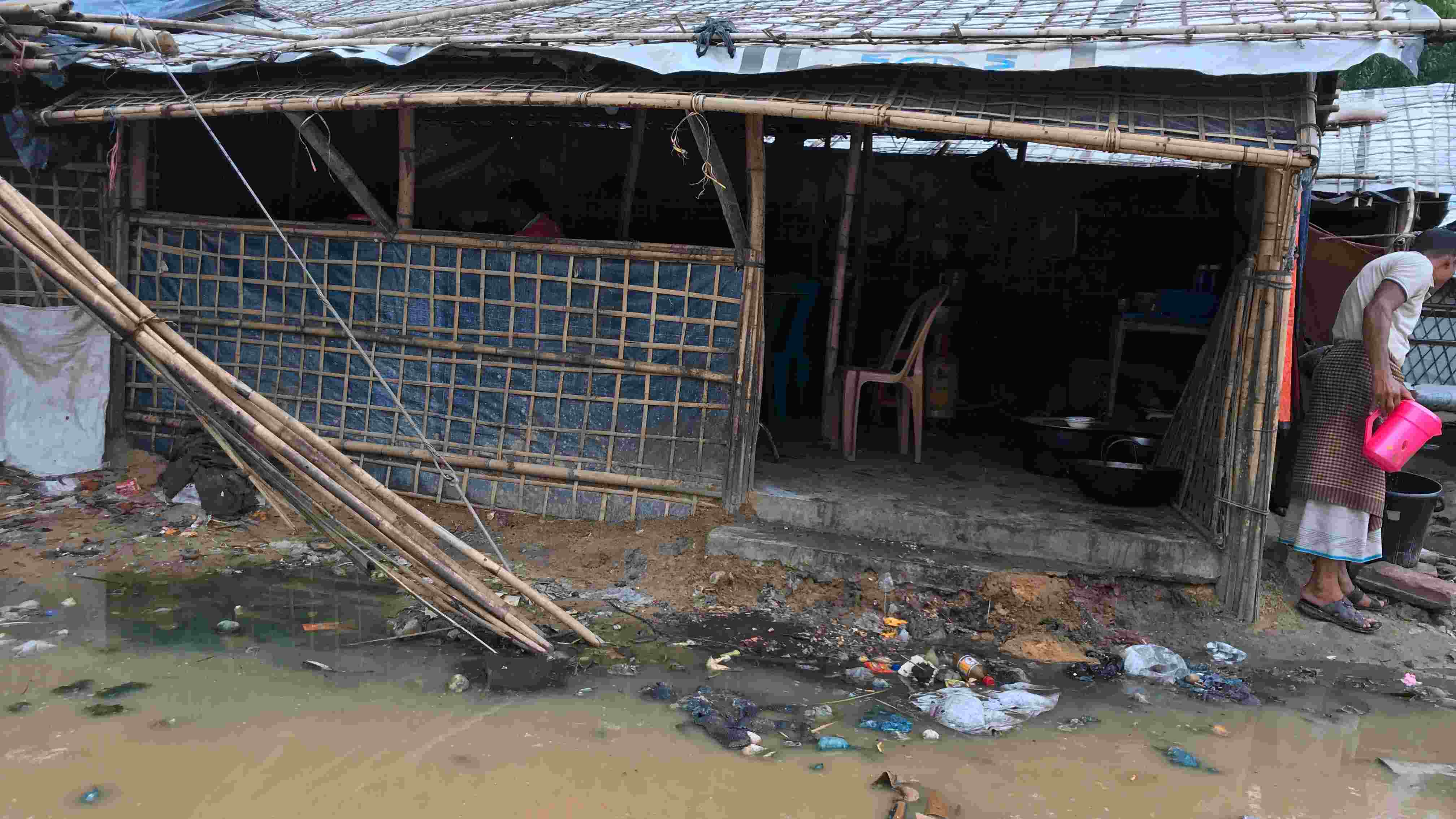 The monsoon rain in the refugee camp has brought the dangers of waterborne diseases. /CGTN Photo