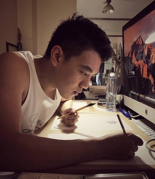 Li Xingming draws a watercolor illustration. /Photo via Weibo.com