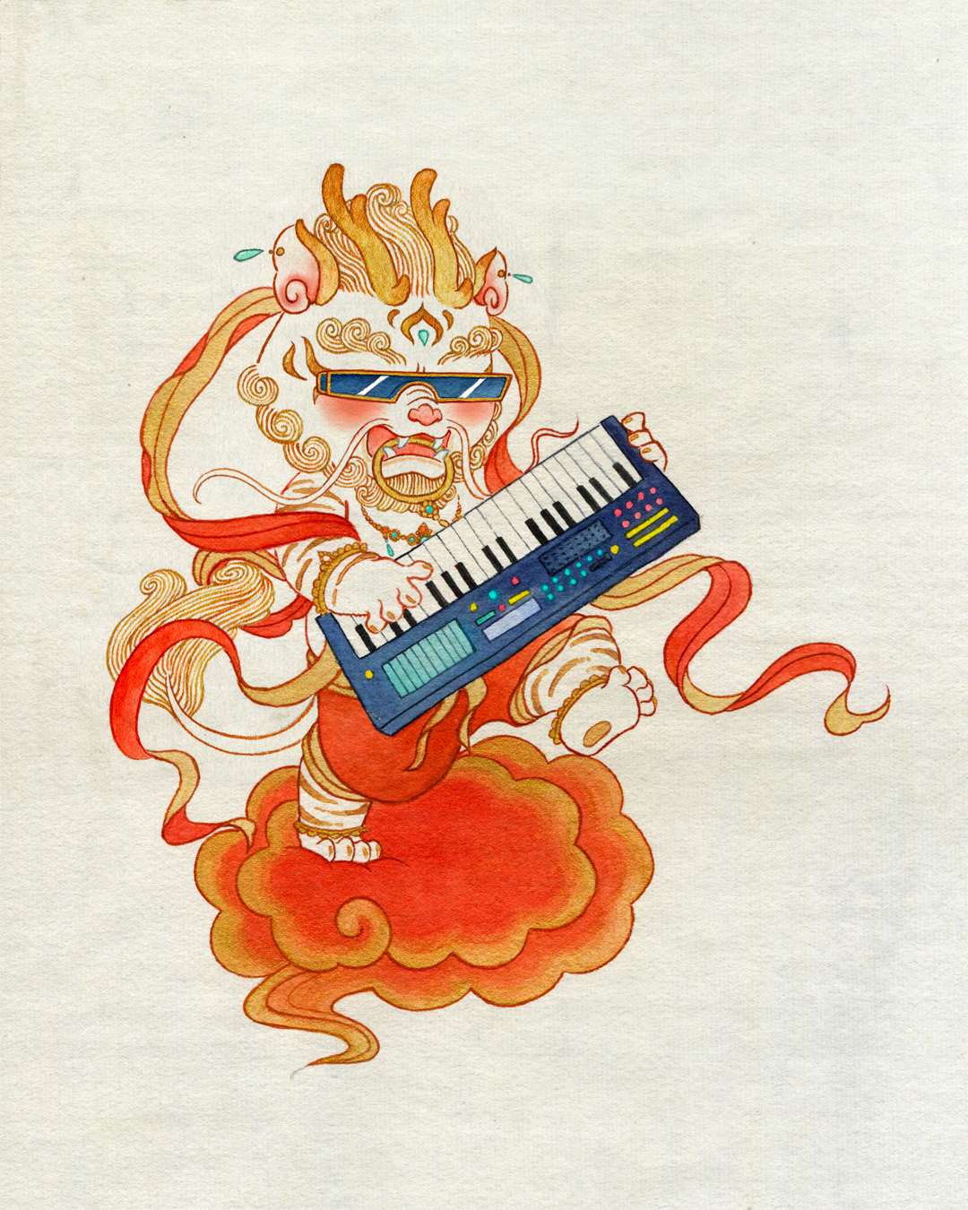 Li Xingming's keyboard-playing character in "The Rock Band of Chinese Traditional Divine Beasts" is based on Bi'an, a Chinese mythological creature. /Photo via Behance.net