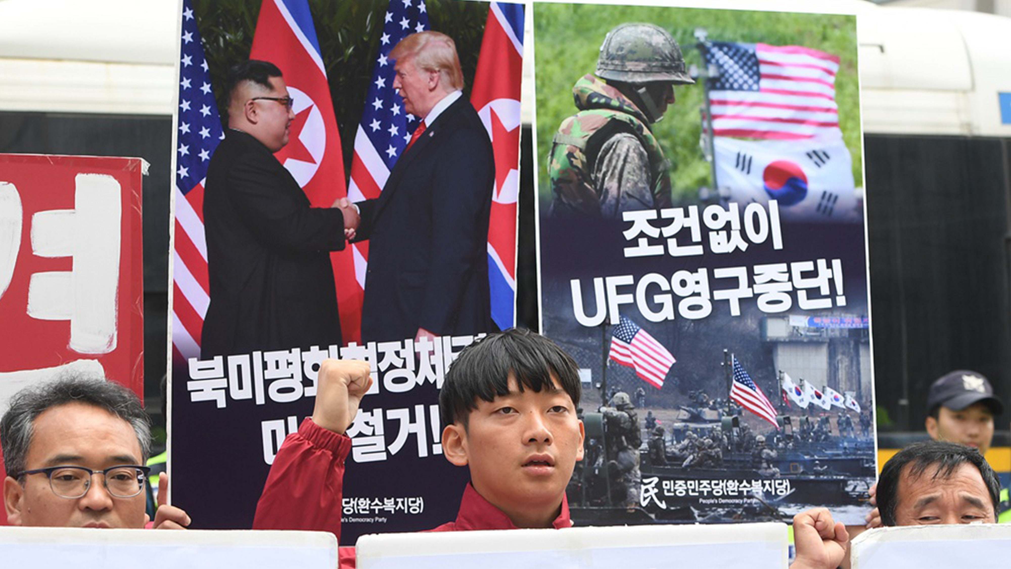 At a press conference after the summit, Trump announced he would end the "very expensive" and "provocative" military exercises with South Korea.