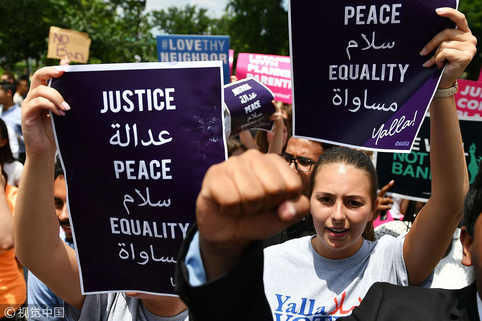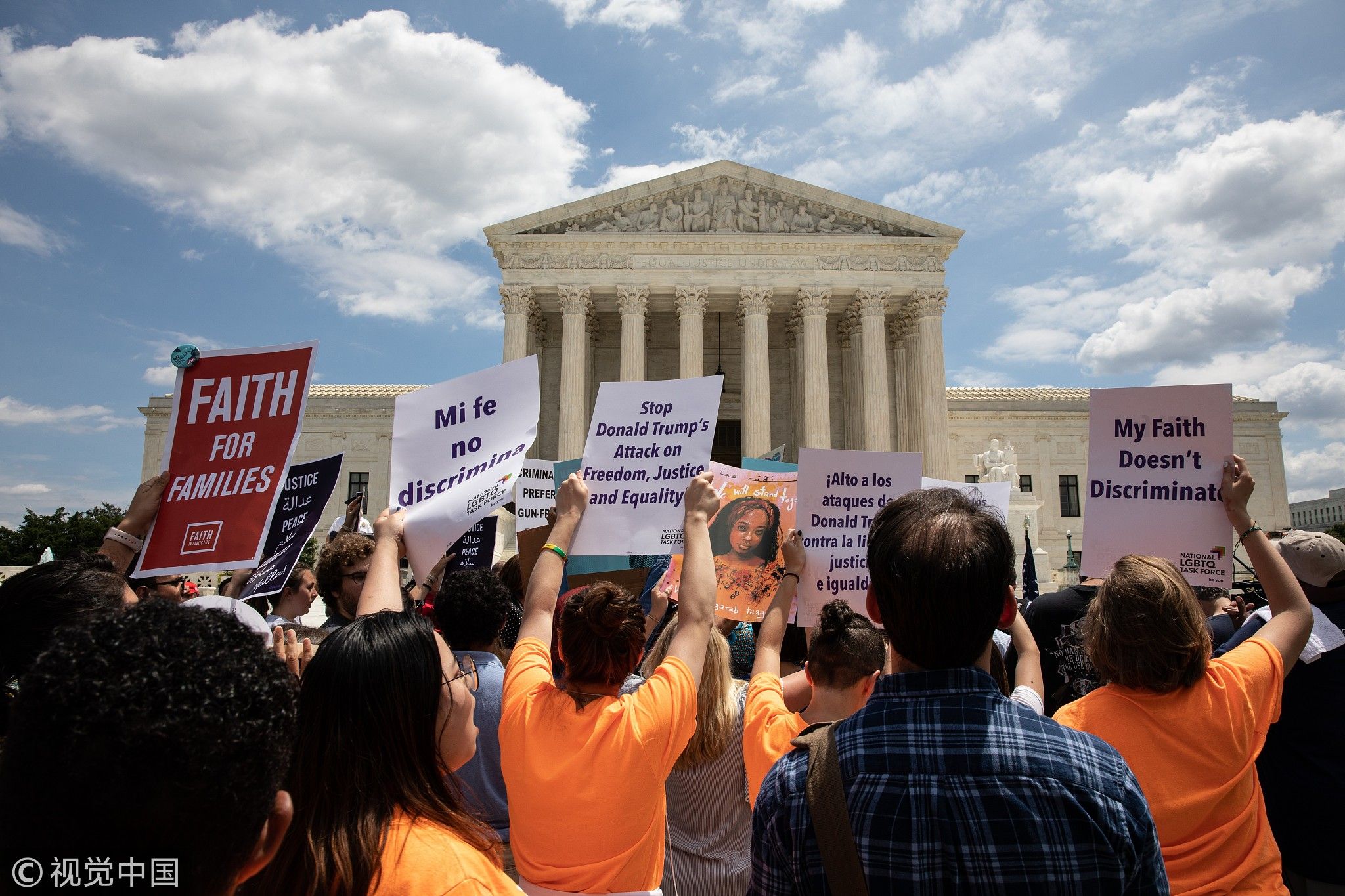 People protest the Muslim travel ban outside of the US Supreme Court in Washington, DC, June 26, 2018. /VCG Photo.