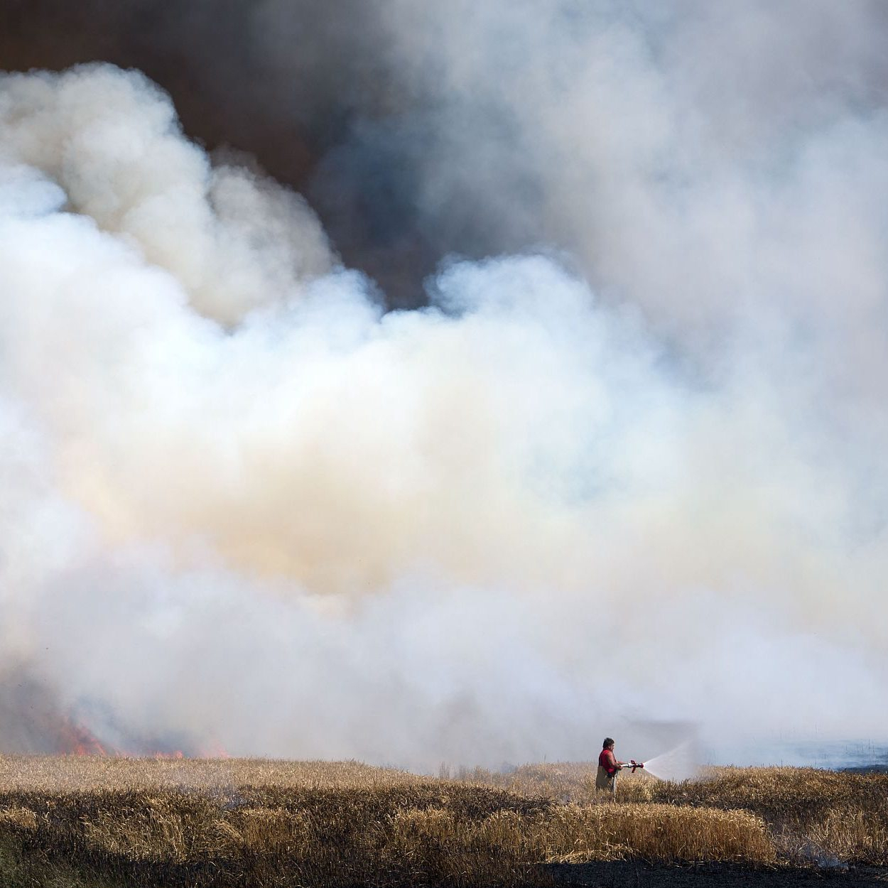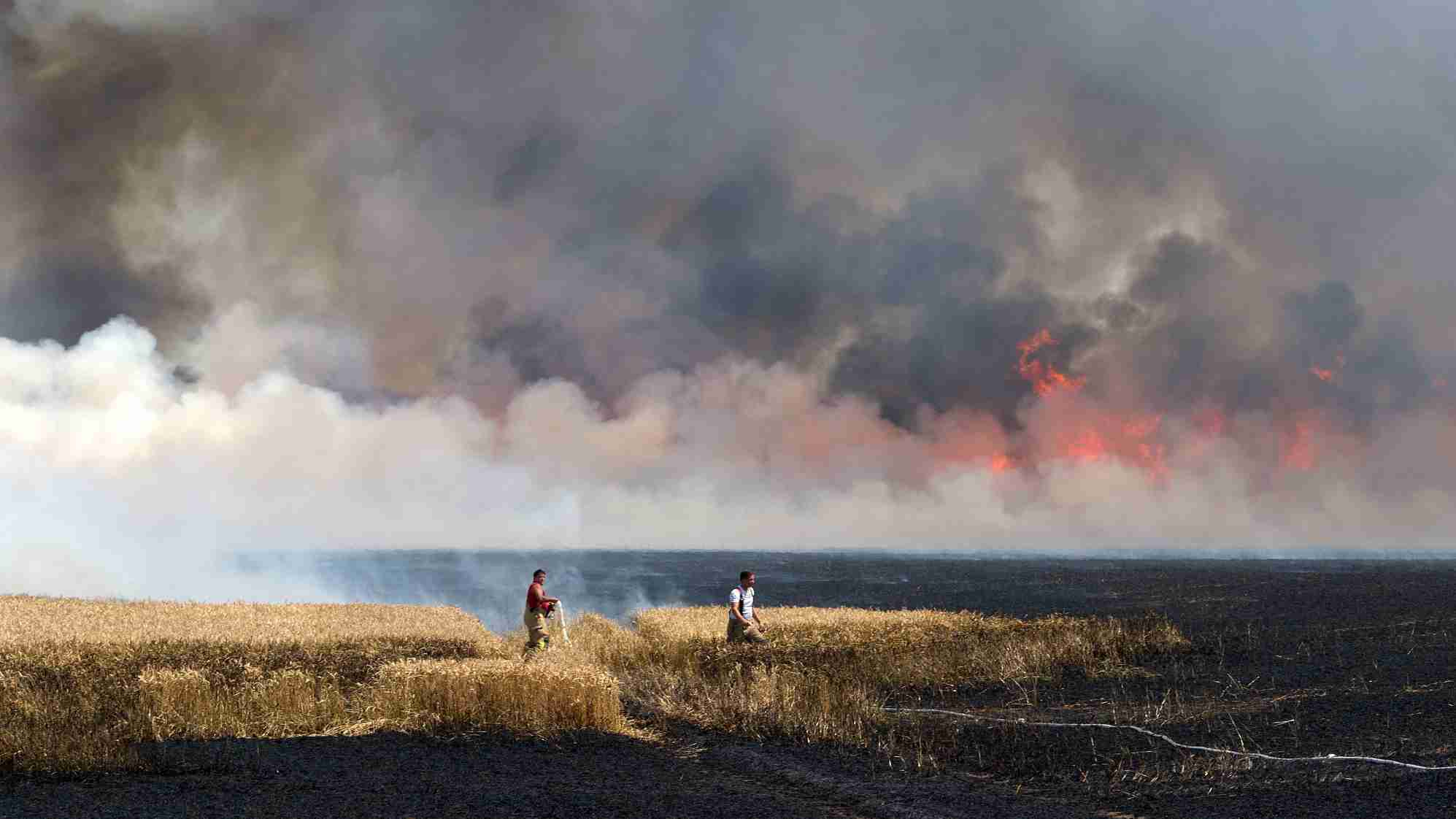A fireworker tries to extinguish a fire on a field that broke out due to ongoing drought in Brehna, on July 4, 2018. /VCG Photo
