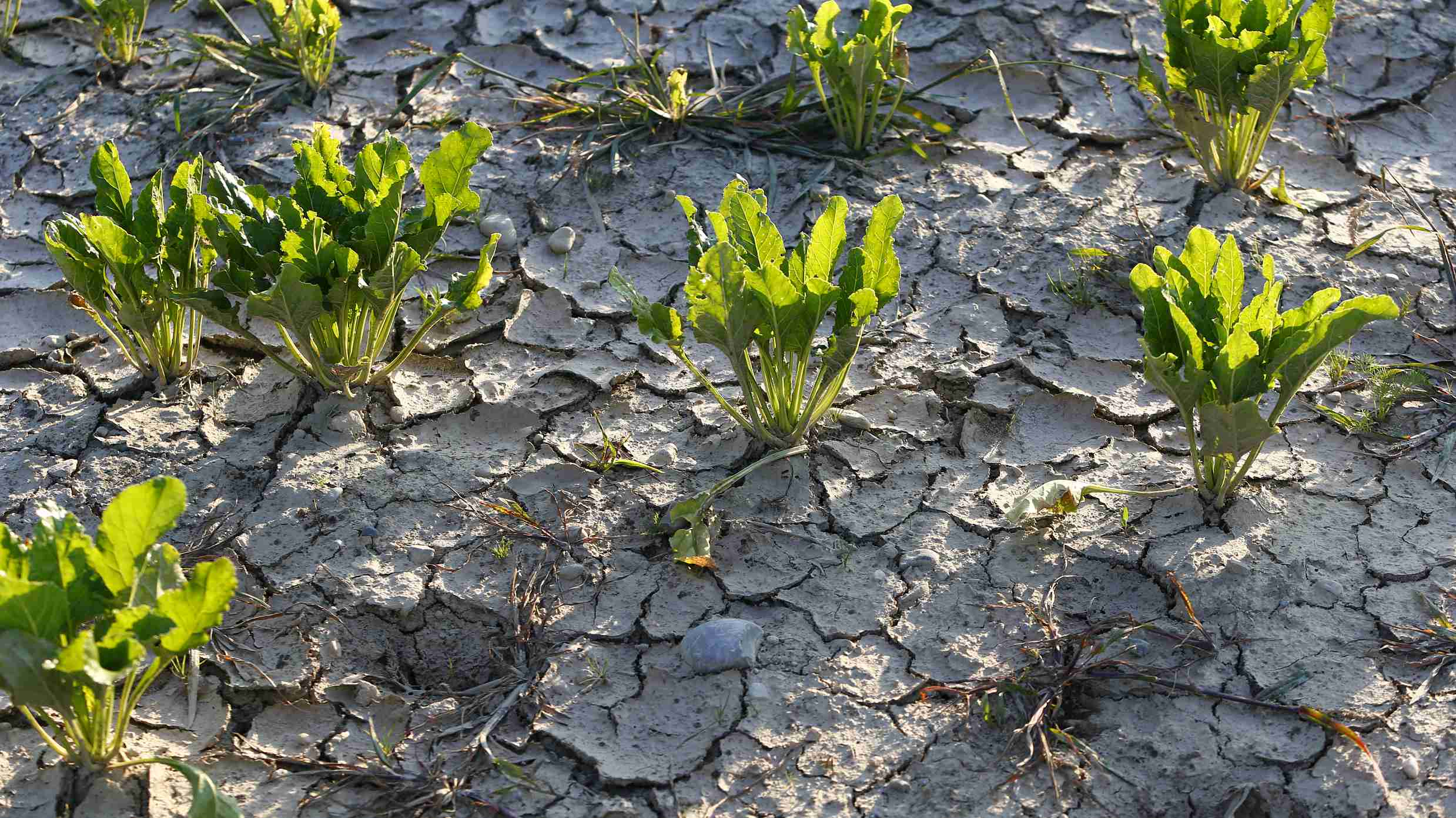 Beets grow in dry and cracked ground next to a wheat field during harvest in Bieburg, Germany, on Friday, July 27, 2018. /VCG Photo