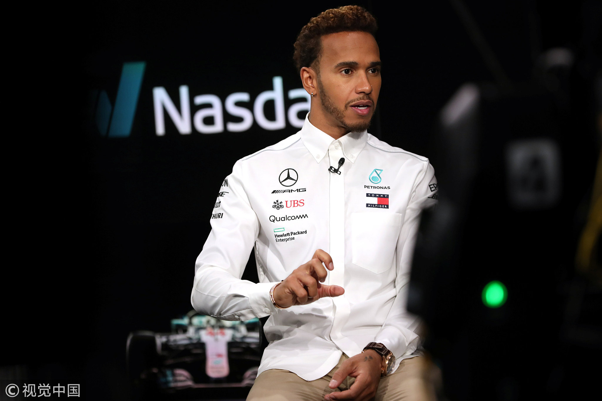 Formula One World Champion, Mercedes' Lewis Hamilton speaks ahead of the United States Grand Prix during an interview at the Nasdaq Market Site in New York City, October 17, 2018. /VCG Photo