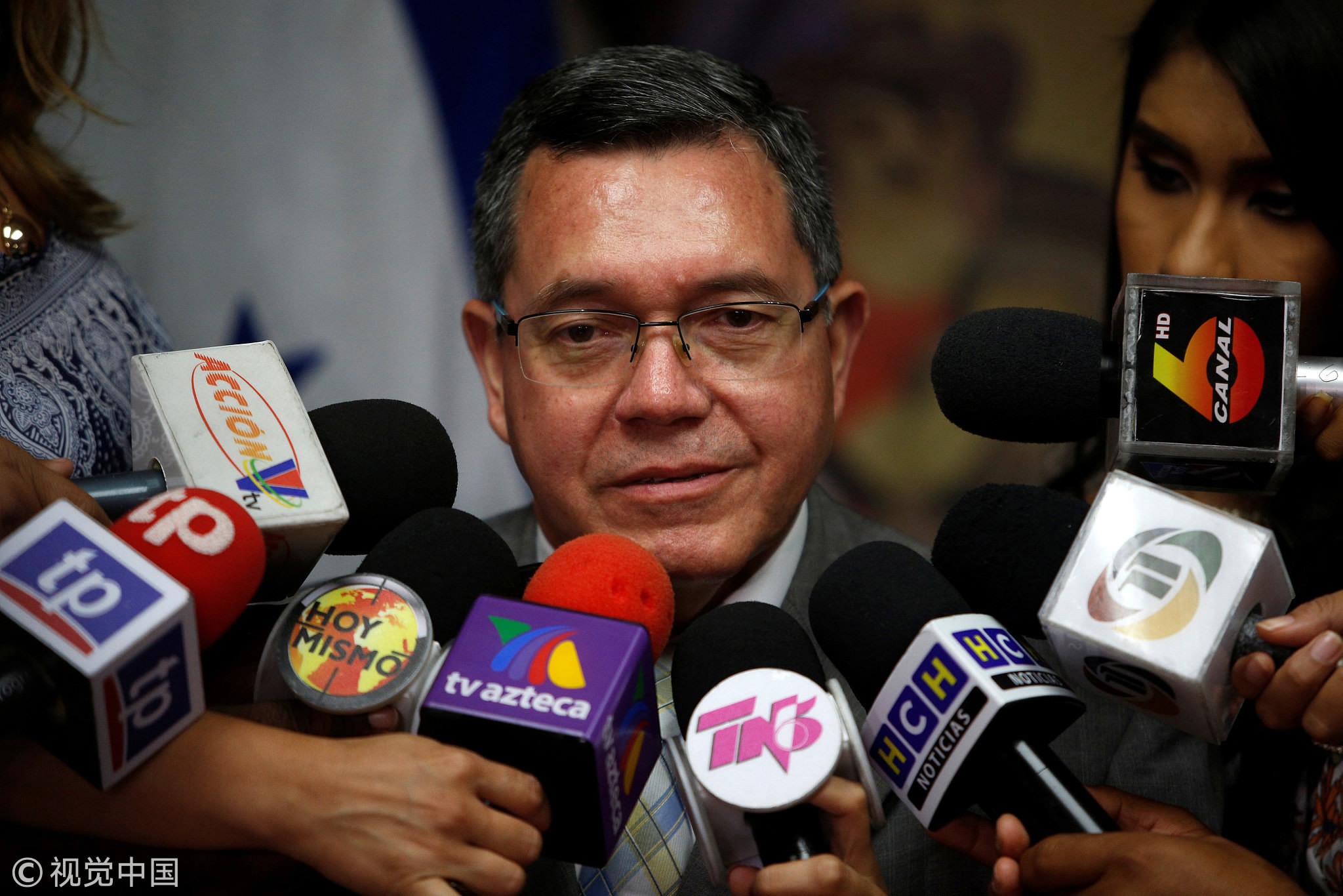 Honduras' Deputy Foreign Minister Jose Isias Barahona speaks to reporters following the decision by US President Donald Trump to shut down temporary protected status (TPS) for Hondurans, at the presidential house in Tegucigalpa, Honduras, May 4, 2018. /VCG Photo