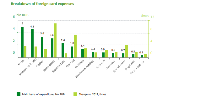Sberbank said in a recent report that its network alone had serviced 899,000 foreign bank cards from 194 countries during the month-long tournament, with one Chinese bank card used to make purchases in 11 different cities.