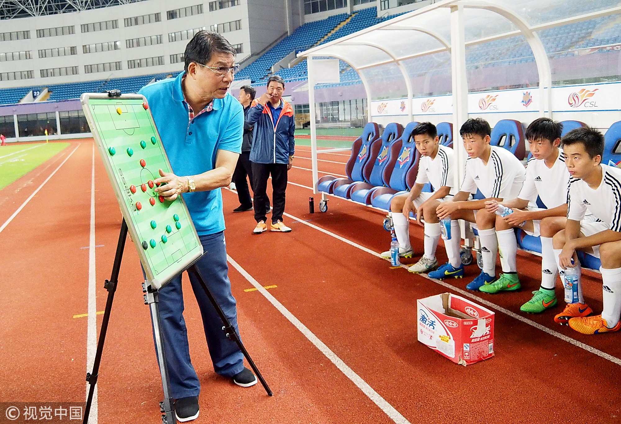 Xu Genbao teaches football tactics beside pitch, Shanghai, October 6, 2015 /VCG Photo