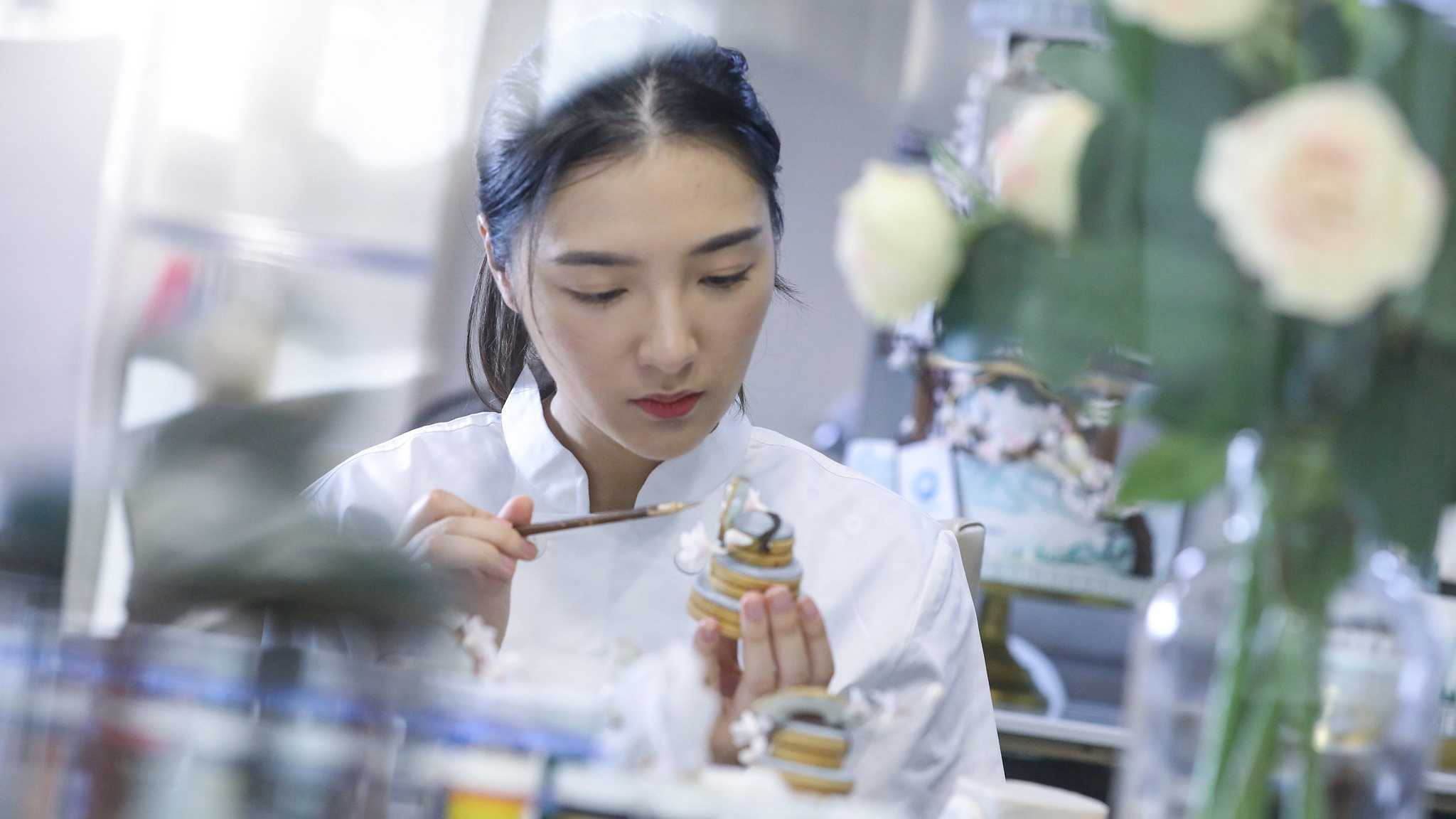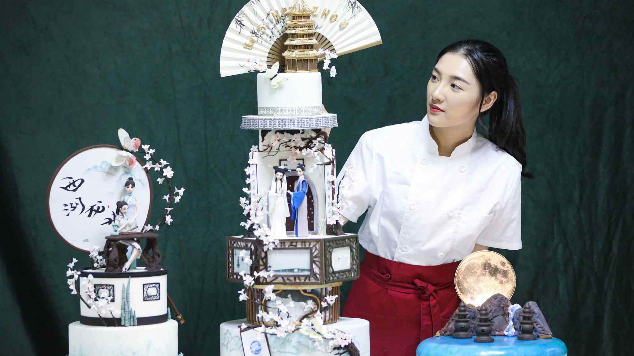 Chen’s cakes also integrate famous traditional Chinese fairy stories like “The legend of lady white” and elements of West Lake Longjing Tea. The baker believes cakes can bring people happiness. /VCG Photo