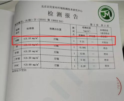 The result surprised Liu. According to the report from the company, the concentrations of formaldehyde and total volatile organic compound (TVOC) highly exceeded the national standards by 1.7 times and 2.3 times respectively.