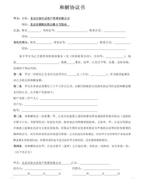 The settlement agreement provided by Ziru Room. /Photo via Beijing Youth Daily
