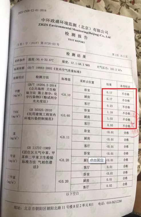 The testing result of Chen Hang's house./Photo via Beijing Youth Daily