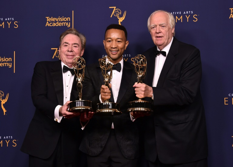 Andrew Lloyd Webber, John Legend and Tim Rice earned EGOT status with their Emmy win for "Jesus Christ Superstar Live in Concert" – each now has an Emmy, Grammy, Oscar and Tony. /AFP Photo
