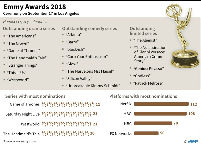 A look at this year's Emmy nominees. /AFP Photo