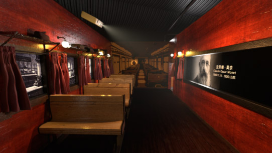 Audiences can sit on a boat to enjoy the view from the work "Sunrise" just like Monet did in 1872. And 3D Mapping technology is used to display a train arriving at a railway station in Paris where Monet created the painting in 1877. Visitors can also walk on the reproduced "Japanese Bridge" to enjoy "Water-lilies," the artist's iconic work.