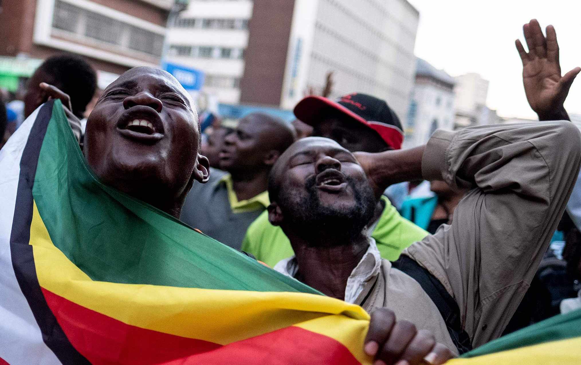 Opposition supporters burned tires in the center of the capital Harare, blocking some streets and engaging in running battles with police who fired water cannon to disperse the protesters.