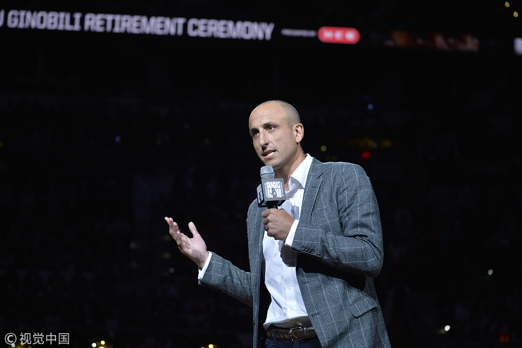 Roaring whoops of "Manu" from the stands galvanized the AT&T Center as the prelude of the ceremony hosted by former Spurs small forward Sean Elliott.