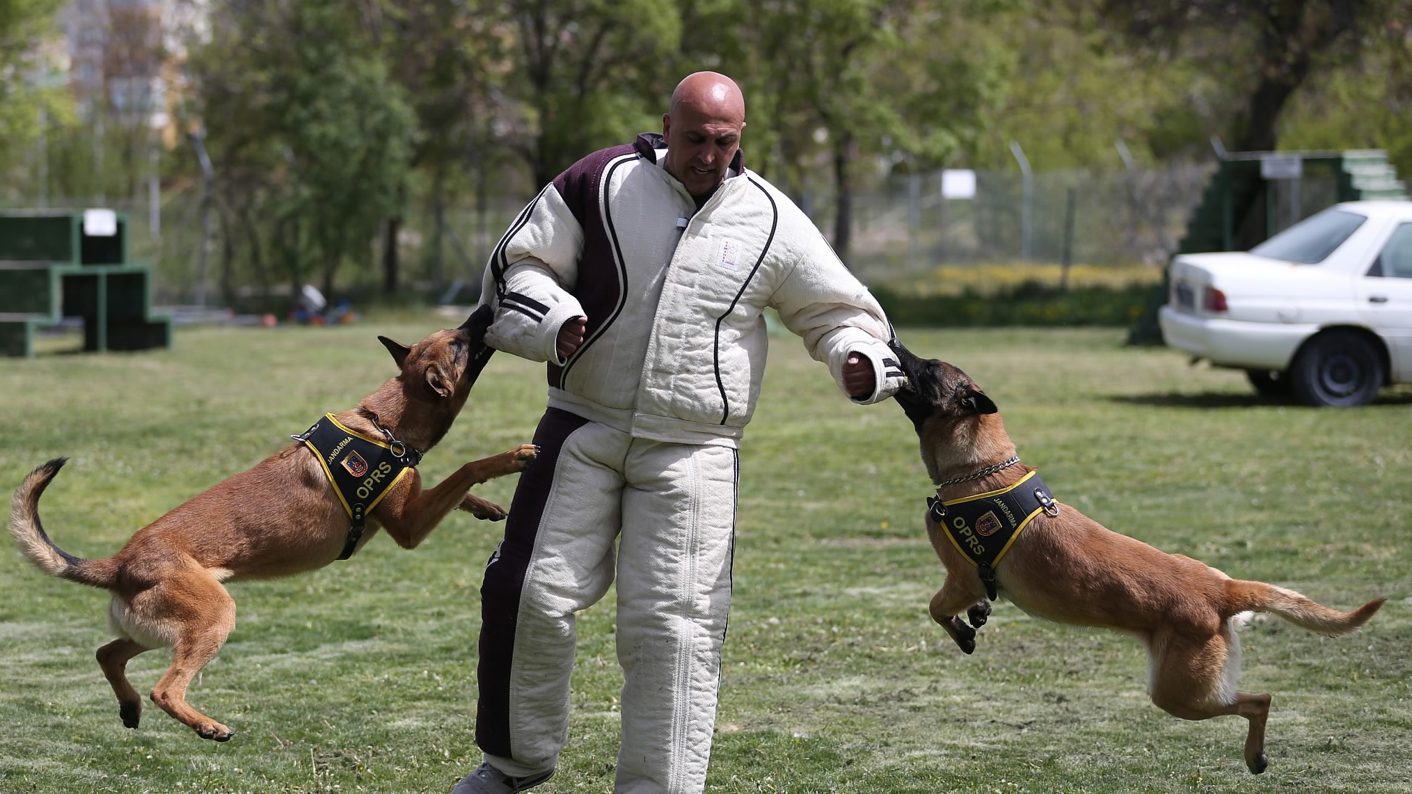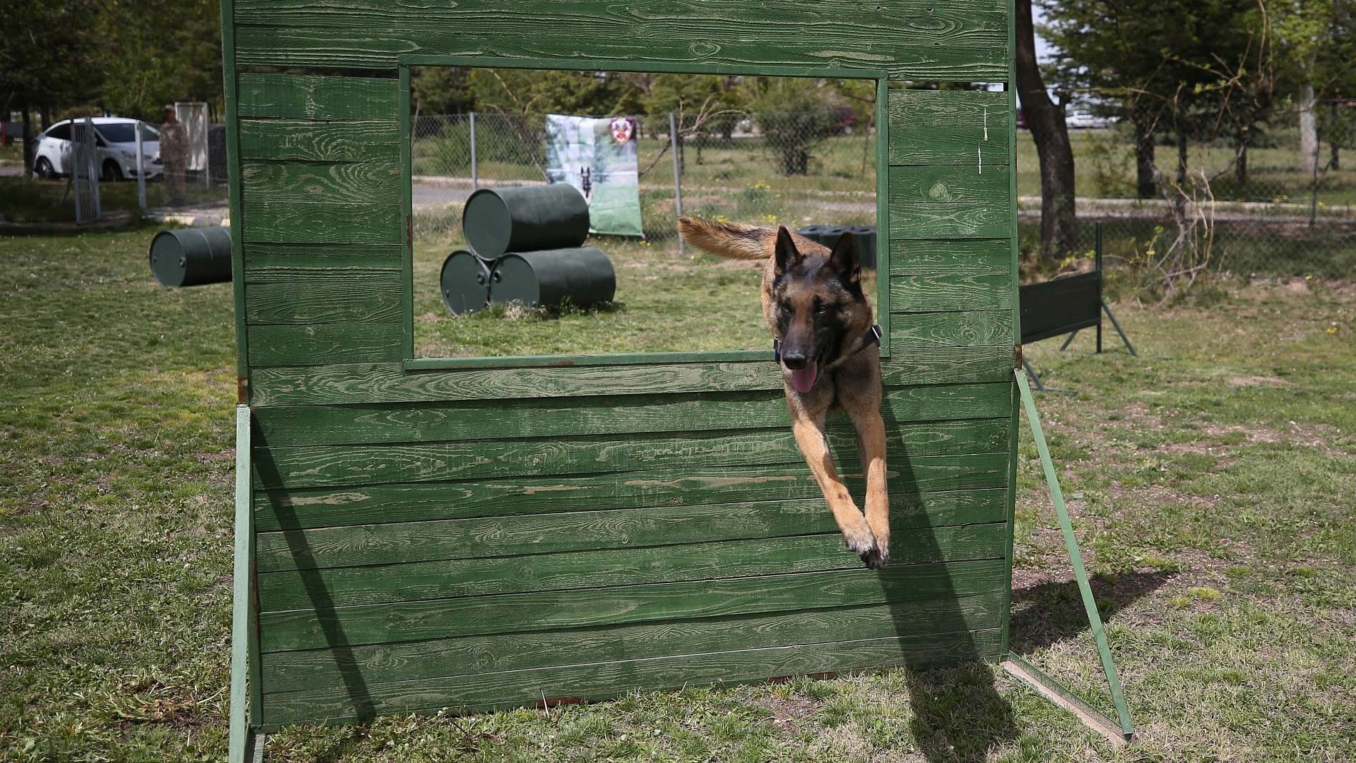 Canines are trained for special operations such as bomb and mine sniffing, narcotic operations, and search and rescue operations at a training school in Turkey's Nevsehir Province. /VCG Photo