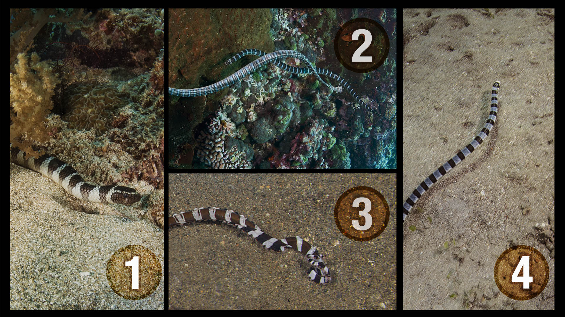 One of the pictures above is not actually a sea snake, but a mimic octopus. Which picture it is?