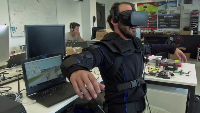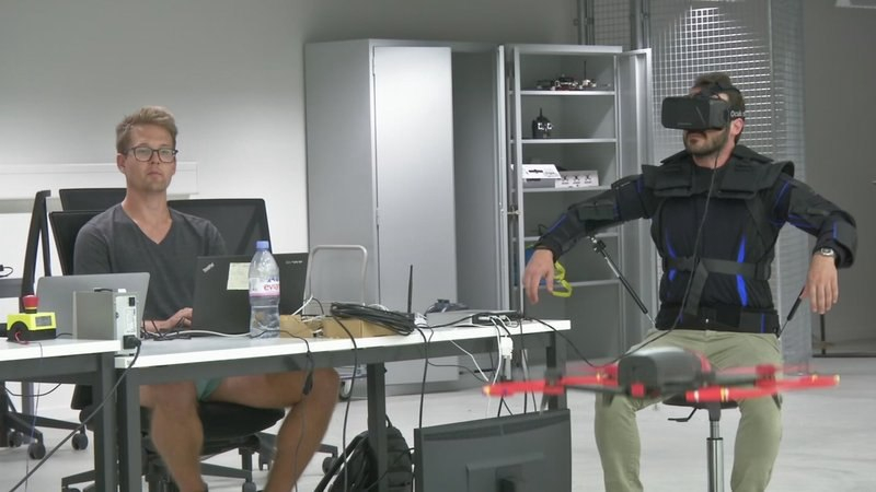 The drone is controlled simply by moving one’s torso, thanks to virtual reality and advanced motion sensors.