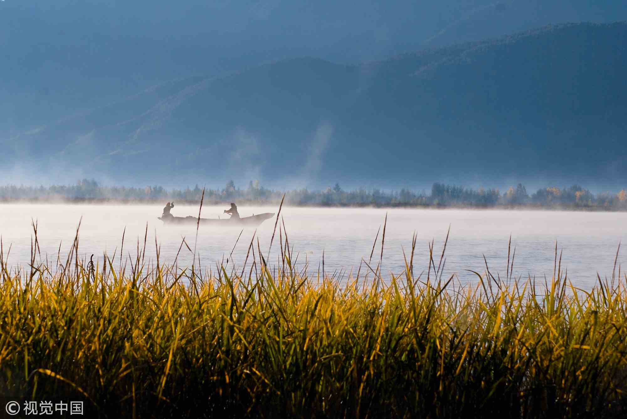 This is Lugu Lake, the crystalline blue of the water and the undulant peaks in the background /VCG Photo
