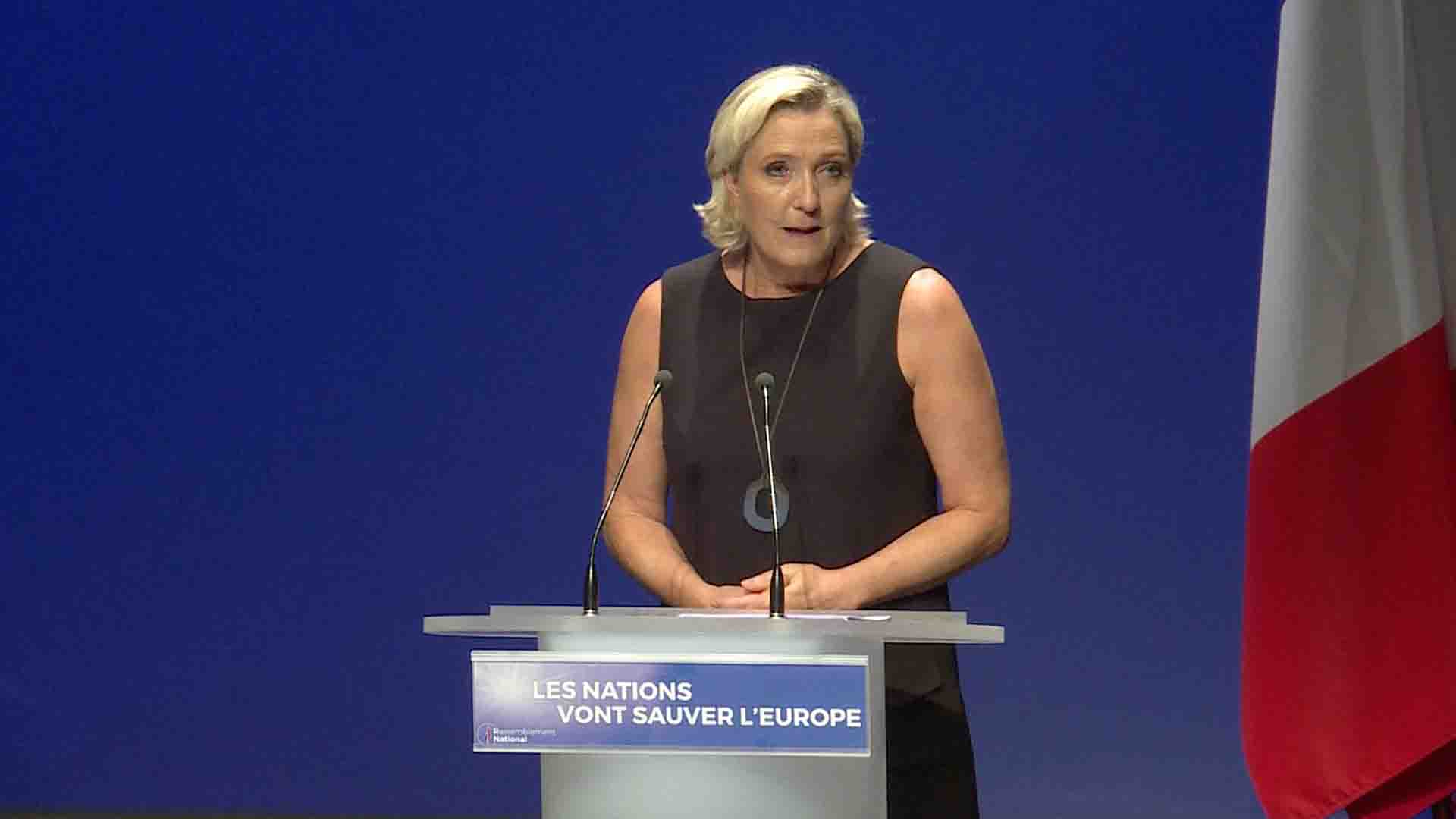France's National Front leader Marine Le Pen attacked the EU's migration policy and criticizes President Emmanuel Macron's economic and globalist policies on Sept. 16, 2018.