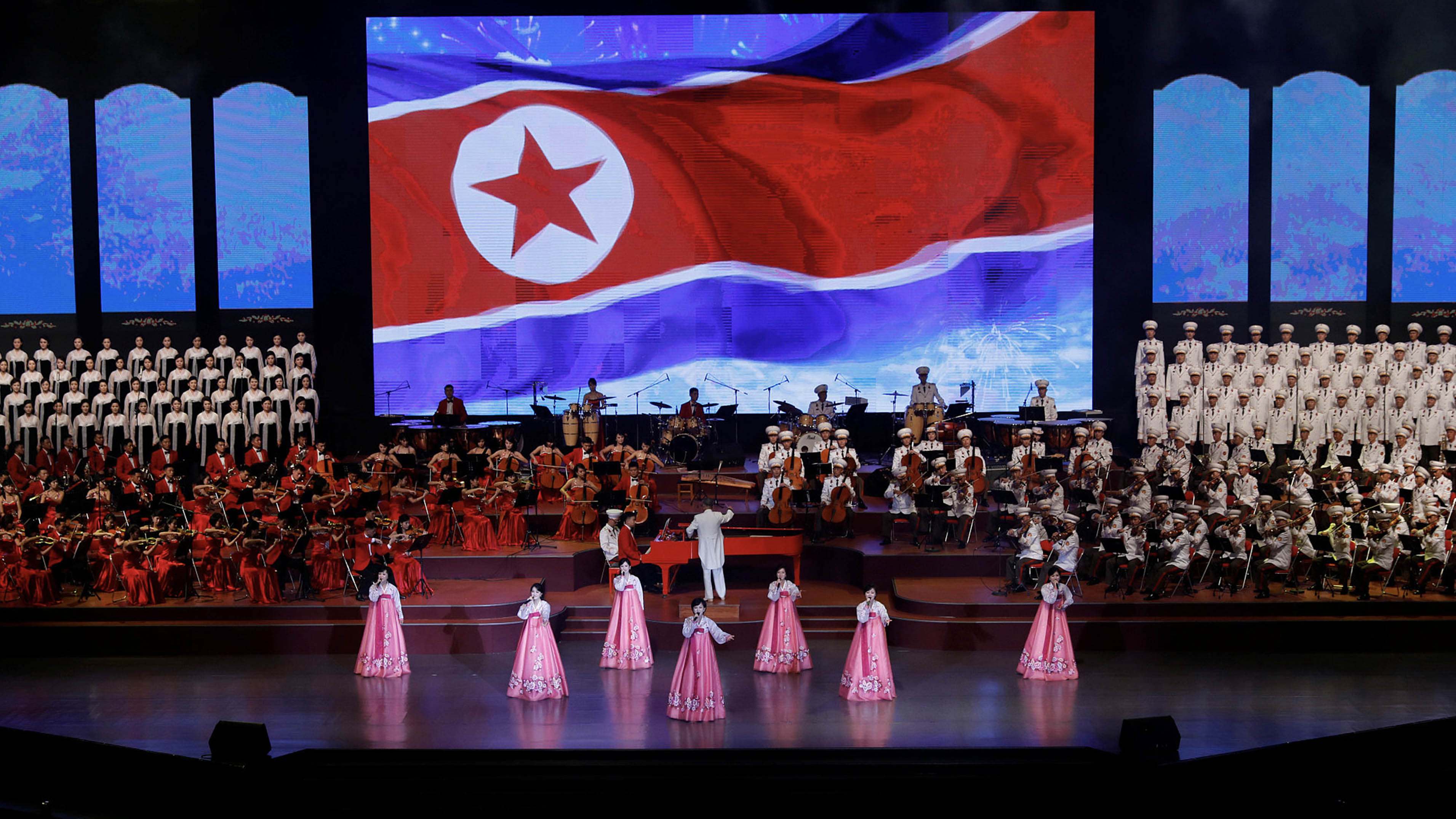 The concert mainly highlighted the country's landmarks, from its spiritual birthplace Mount Paektu to the Pyongyang skyline, and economic development, with shots of factories, steel plants, and abundant fields of wheat.