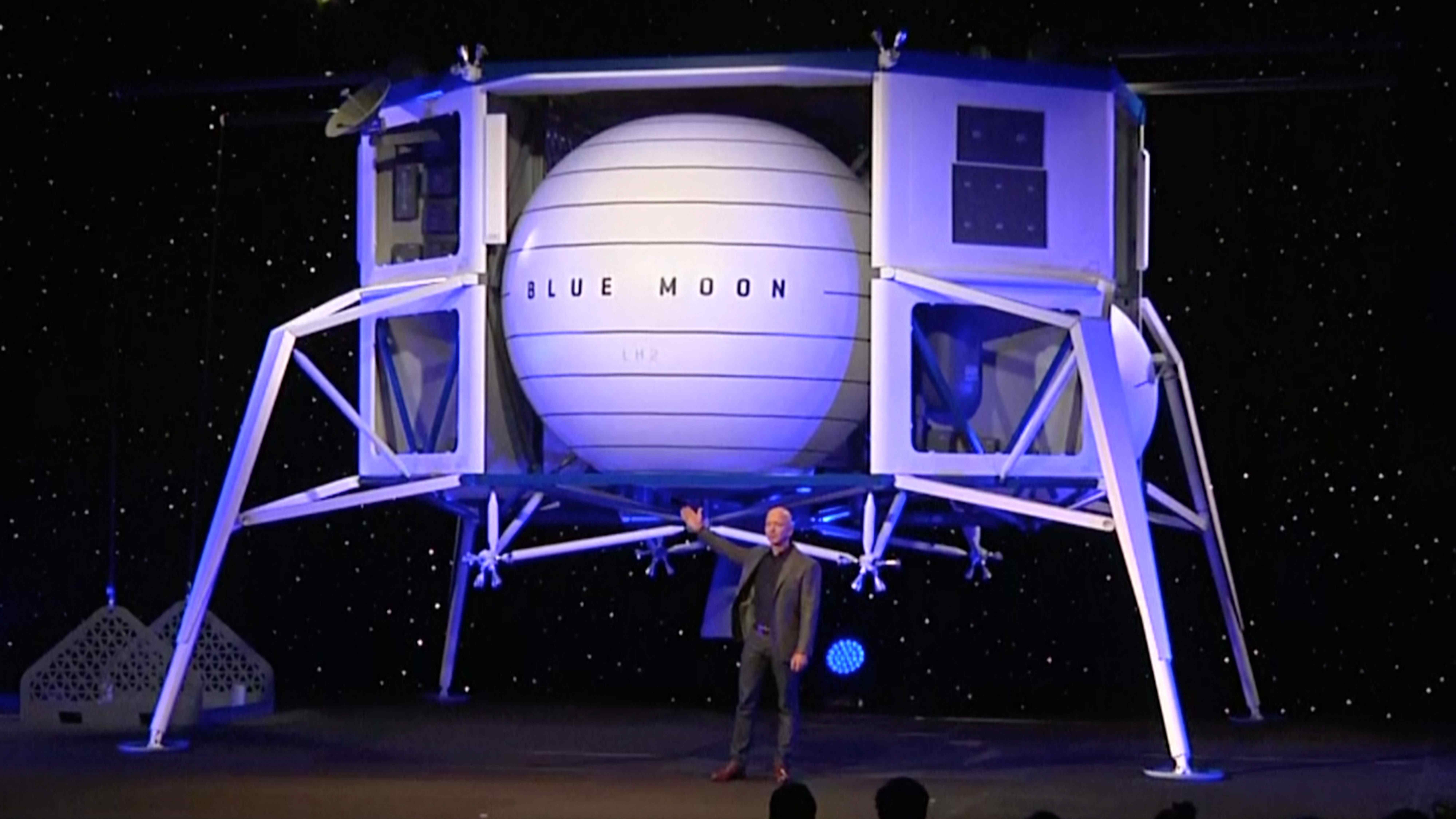 Jeff Bezos, who heads both Amazon and space company Blue Origin, unveiled a lunar lander Thursday that he said would be used to transport equipment, and possibly human beings, to the south pole of the Moon by 2024.