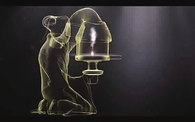 3D scanning of a Changxin figurine lamp of Han dynasty. /Sina Photo