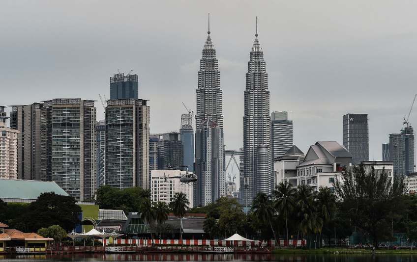 Malaysia's iconic landmark Petronas Twin Towers (center-L) dominate the skyline of Kuala Lumpur, June 26, 2018. /VCG Photo
