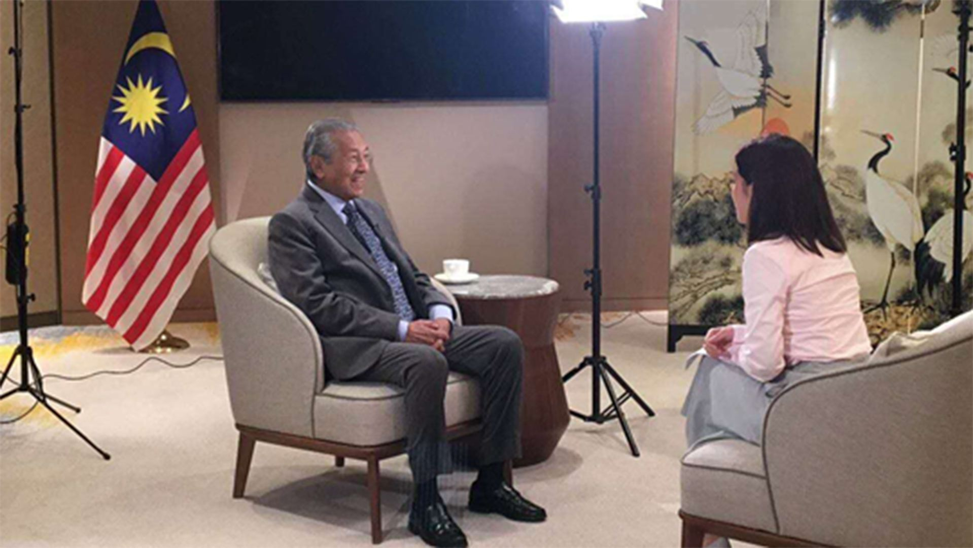 Malaysia's Prime Minister Mahathir Mohamad speaks to CGTN reporter Wei Lynn Tang in an exclusive interview. /CGTN Photo