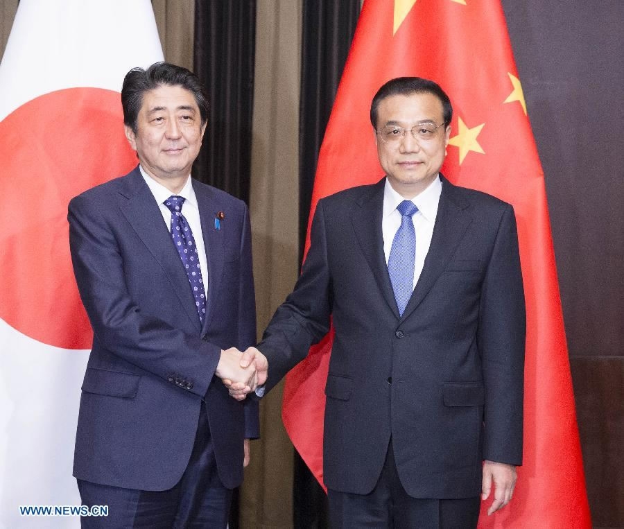 Shinzo Abe at a bilateral summit, Chinese Premier