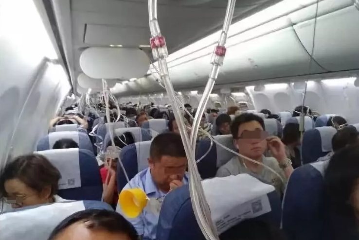 Pictures posted online showed yellow oxygen masks dangling from the ceiling. /Photo via Global Times