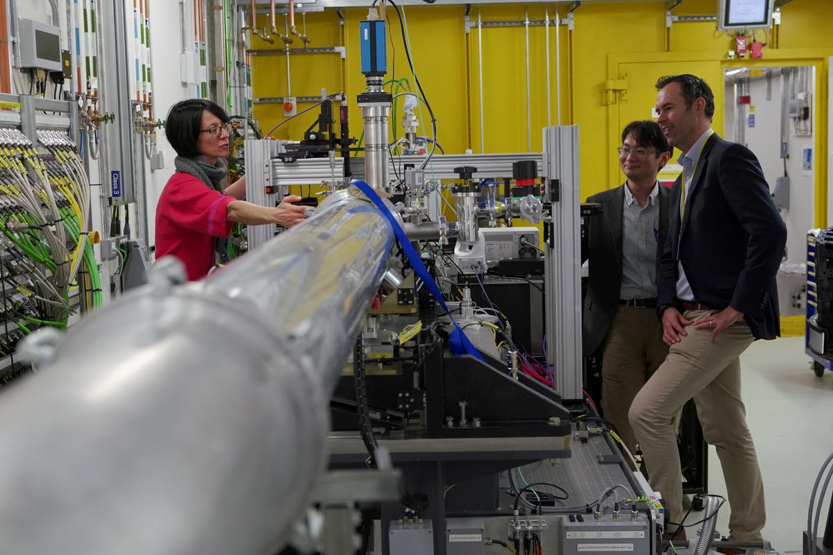 Tom Scott from the University of Bristol, Dr Yukihiko Satou from the Japan Atomic Energy Agency (JAEA) and Silvia Cipiccia, beamline scientist, are seen at Diamond Light Source, Britain's national synchrotron, or cyclic particle accelerator, in Didcot, near Oxford, UK, November 16, 2018. /Reuters Photo