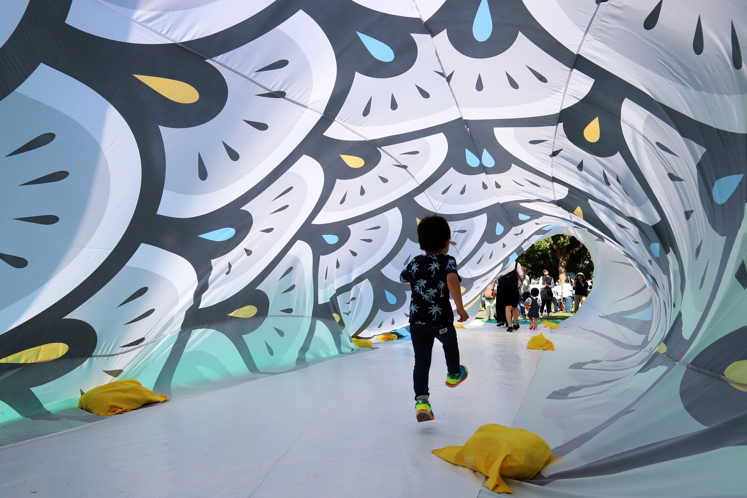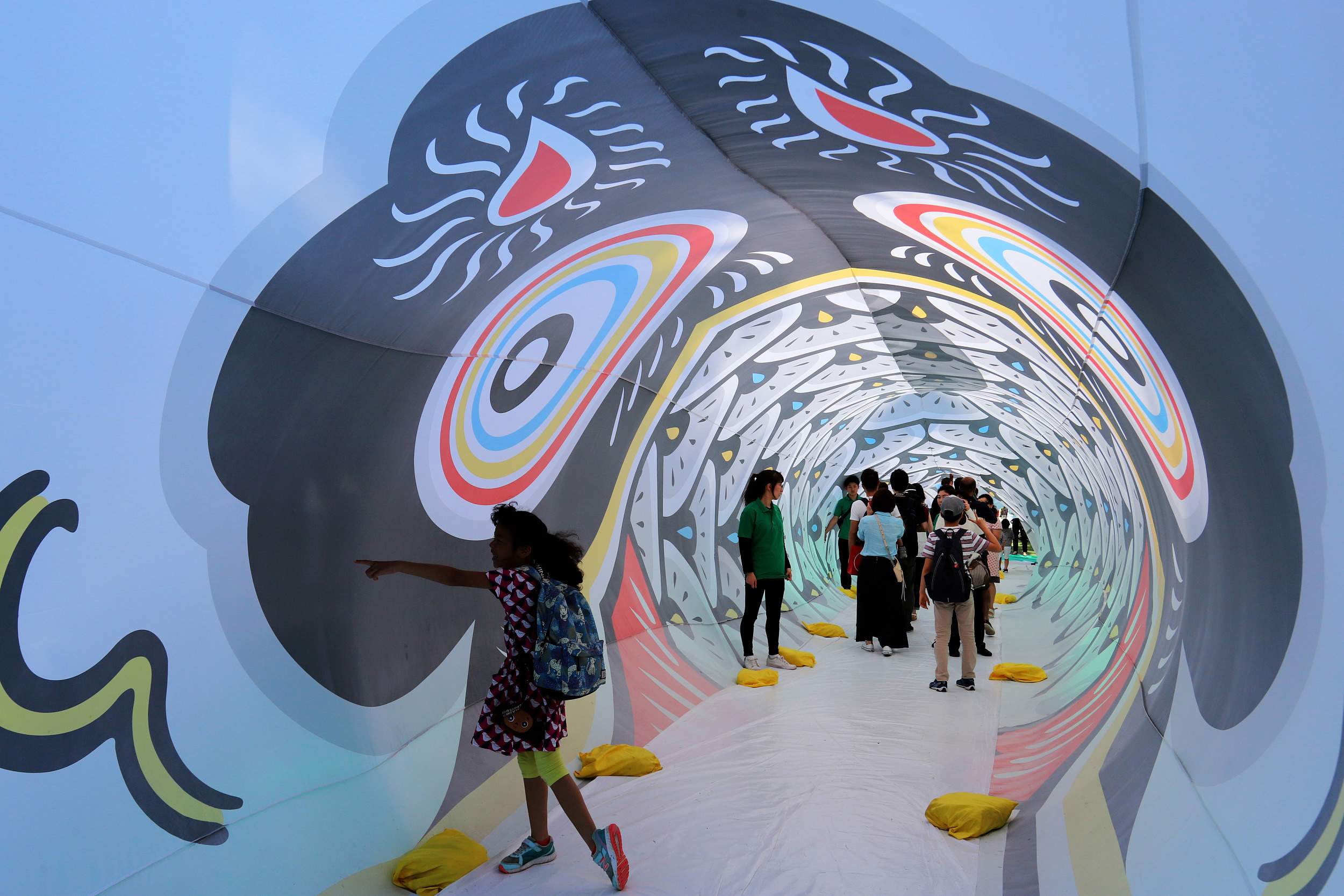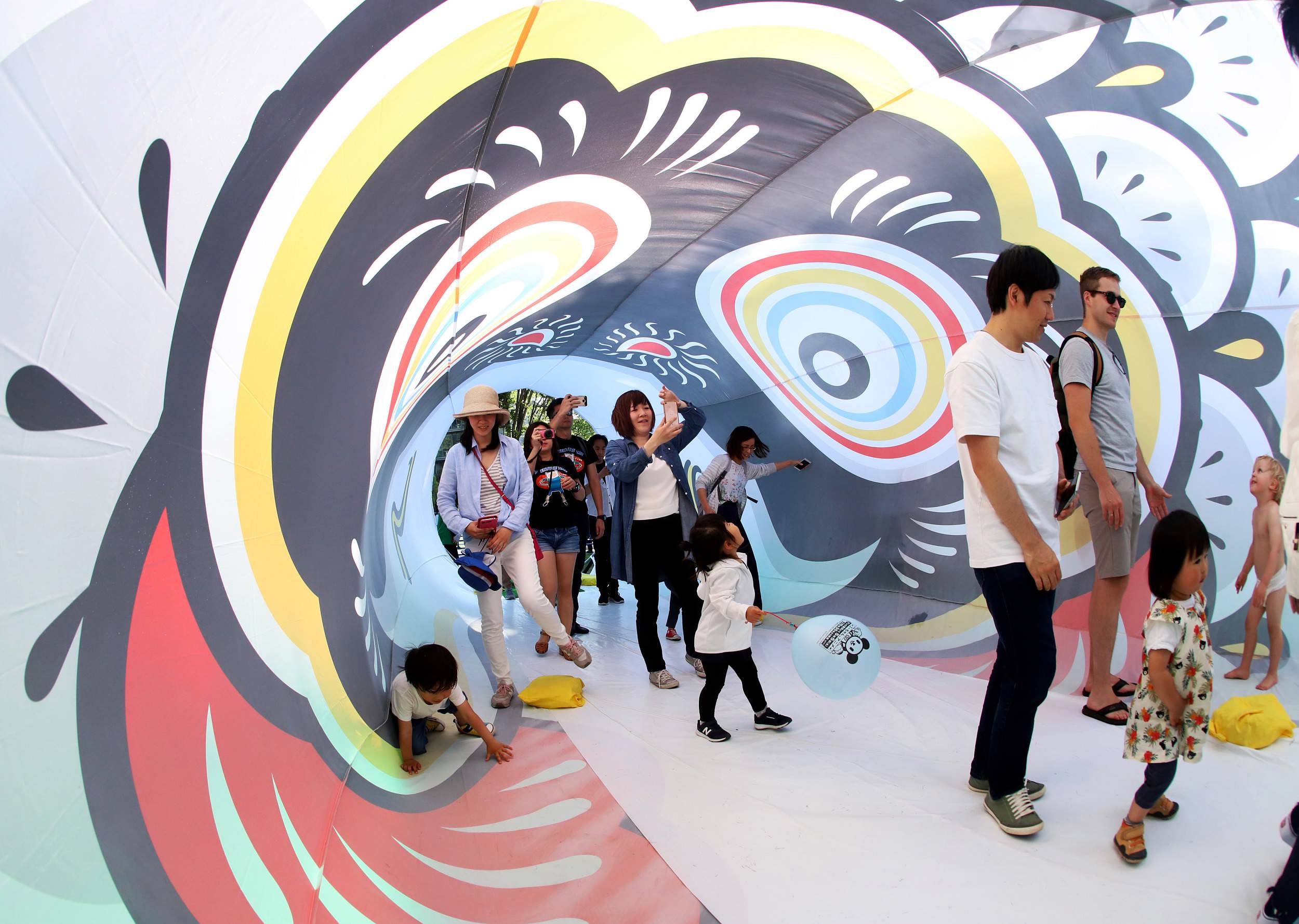 The installation called "Crawling through a Koinobori" was held as part of Japan's Golden Week holidays. /VCG Photo
