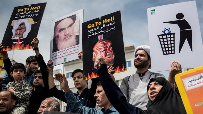 They carried placards with the iconic decades-long Iranians' protest language of "Death to America."