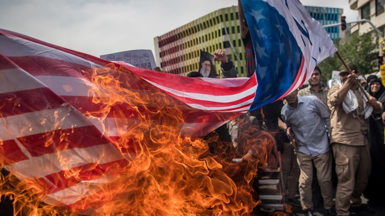 Iranians burn a US flag during a protest against US President Donald Trump's decision to walk out of a 2015 nuclear deal, in Tehran, Iran, May 11, 2018. /Reuters Photo