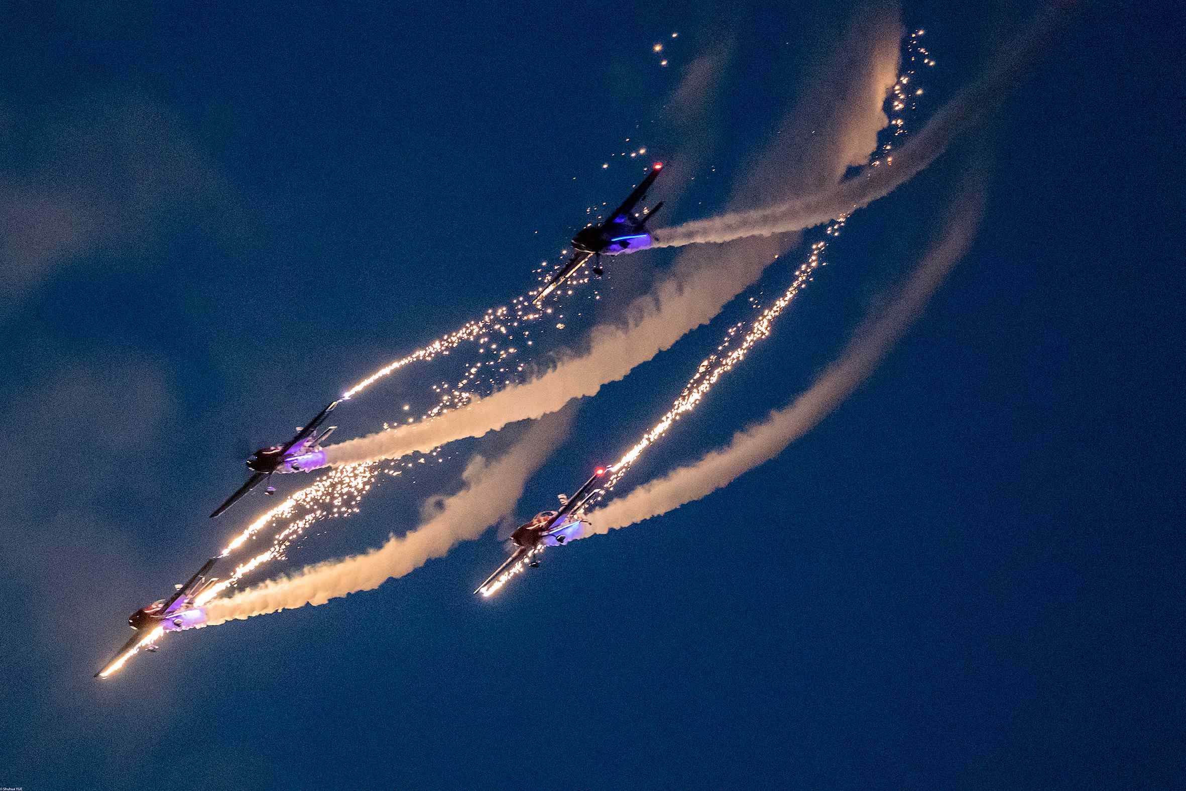 The world's top aerobatic pilots gave a nighttime performance at the Zhengzhou Air Show in central China’s Zhengzhou City. /VCG Photo
