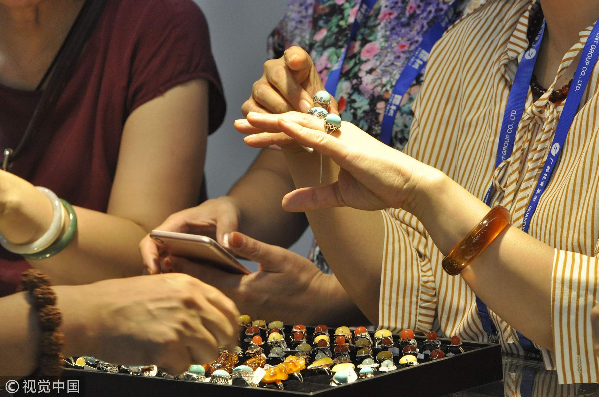 Visitors tried jewelry from Myanmar during the 14th CAEXPO. /VCG Photo