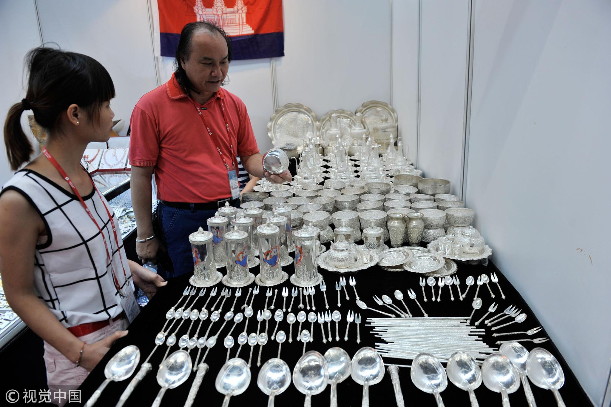 A rich collection of silverwares from Cambodia displayed during the 14th CAEXPO. /VCG Photo