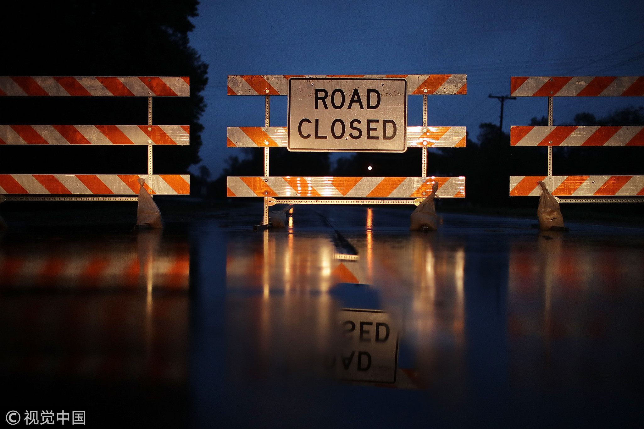 Barricades block Highway 70 where the Neuse River has flooded the road in Kinston, North Carolina, September 15, 2018. /VCG Photo