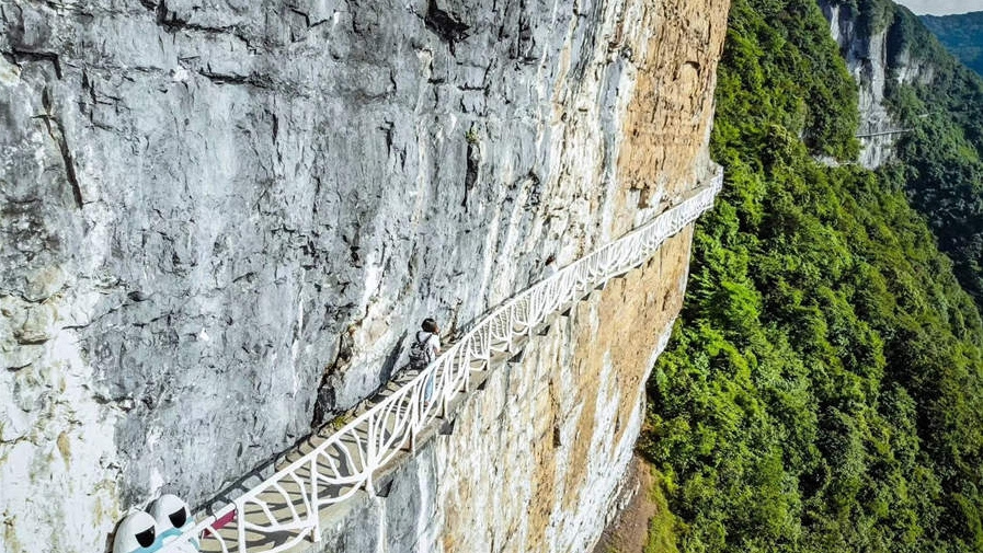 A walkway crosses a vertical cliff at Jinfo Mountain in Chongqing. /CD Photo
