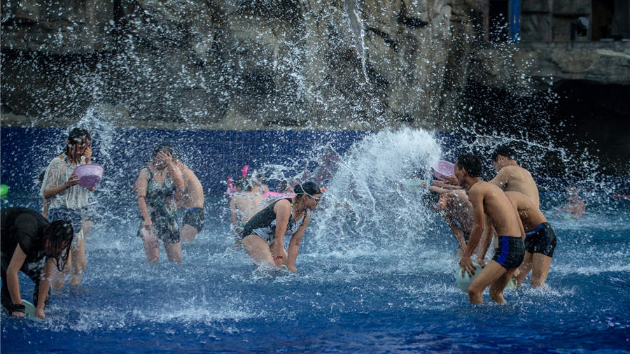 Tourists play in the hot spring surfing pool at the Jinfo Mountain Scenic Area in Chongqing. /CD Photo
