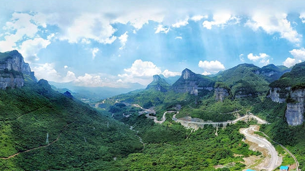 Lush green vegetation and steep mountains enhance the scenery at Jinfo Mountain in Chongqing. /CD Photo