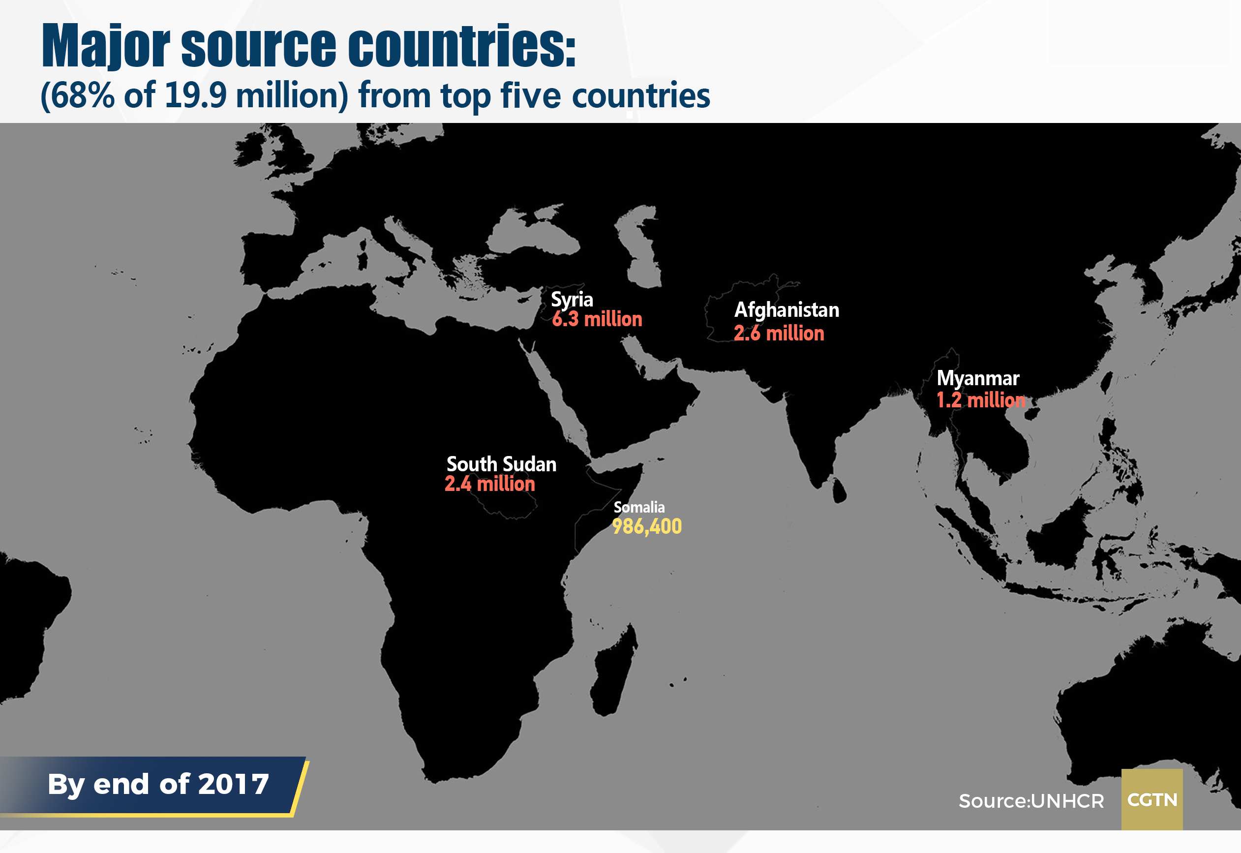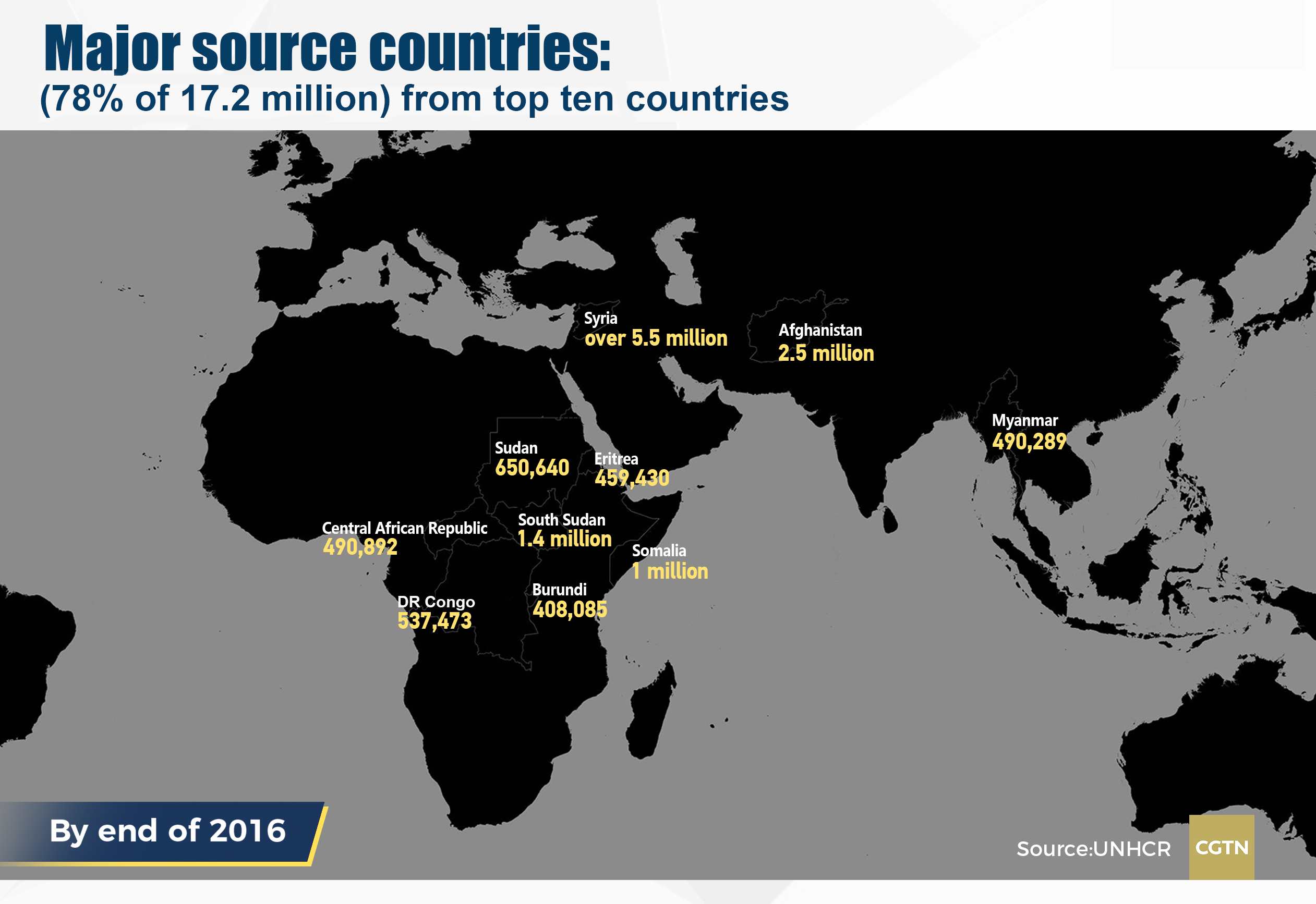 The conflict in Syria witnessed the largest number of refugees from a single country in 2017 at nearly 6.3 million, more than twice the number from Afghanistan, which ranked second. The third goes to South Sudan, which still suffers after the breakdown in peace efforts in July 2016.