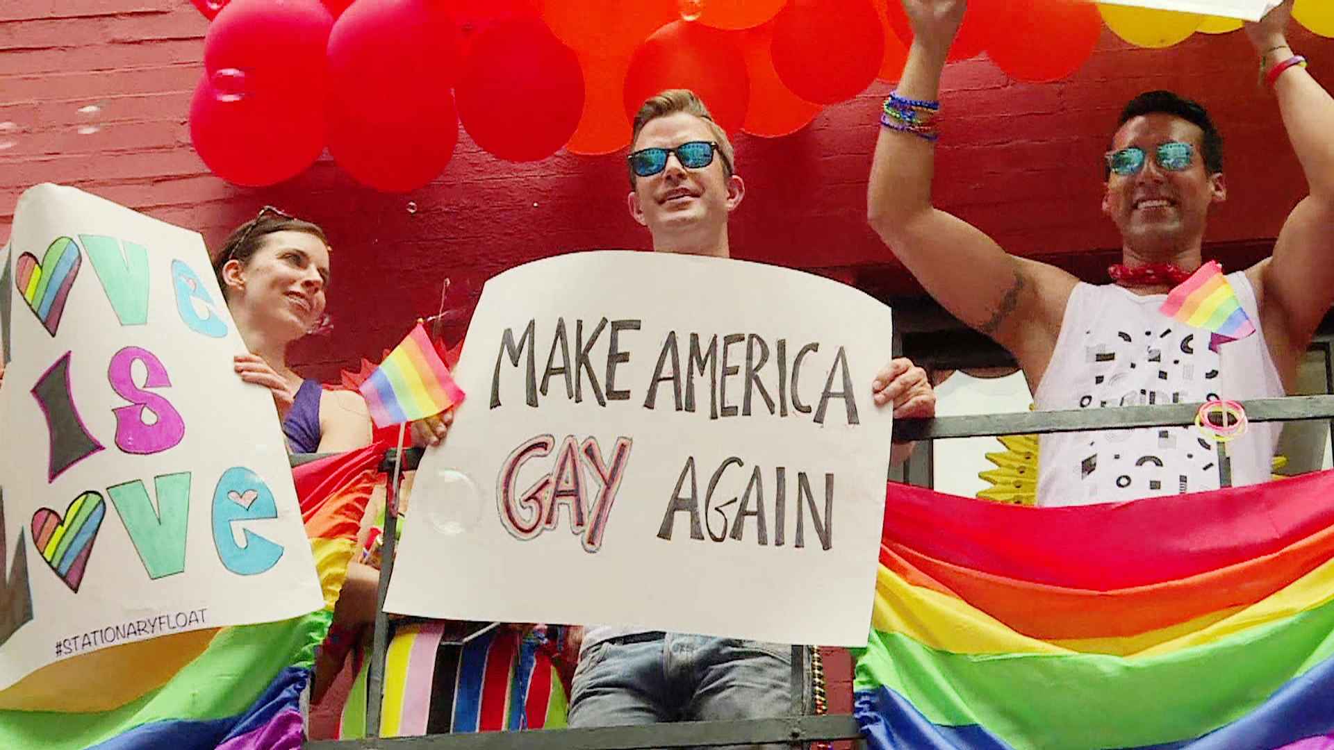Tens of thousands of New Yorkers marched in the city’s 49th gay pride parade. Attendees sported colorful outfits and carried signs touting slogans like "New York State of Love" and "Definitely Different." Organizers see the parade as a response to LGBT policy changes under the Trump administration. The parade began in 1970 after riots in response to the police raid of Stonewall Inn gay bar.