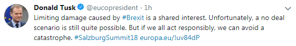 Tusk added: "Let me recall that limiting the damage caused by Brexit is our shared interest. Unfortunately, a no deal scenario is still quite possible. But if we all act responsibly, we can avoid a catastrophe."